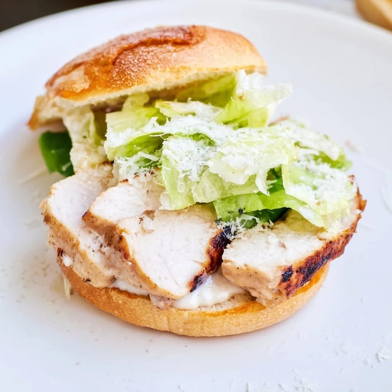 Save My neighbor knocked on the door one Saturday afternoon holding a half-empty jar of Caesar dressing and asked if I had chicken. Twenty minutes later, we were standing over my grill pan, debating whether to add tomatoes. That improvised lunch turned into this sandwich, which I now make whenever I need something fast but crave real flavor. The smell of garlic and char still reminds me of that spontaneous moment.