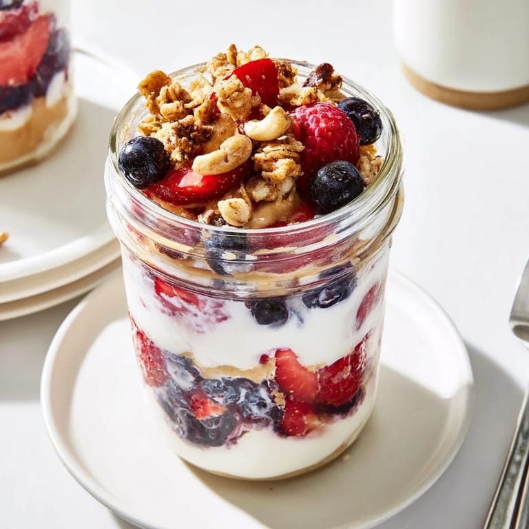 Save There's something about the moment when cashew butter swirls into cool Greek yogurt—that first spoonful where creamy meets nutty, and you realize breakfast doesn't have to be rushed. I discovered this parfait on a Tuesday morning when I had exactly ten minutes before heading out, nothing but yogurt, some berries I'd picked up days before, and a jar of cashew butter that had been sitting in my cupboard. What started as improvisation became the thing I now make almost every week when I want something that feels indulgent but doesn't weigh me down.