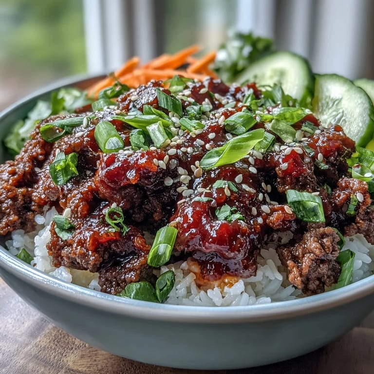 The secret is that gochujang is doing five jobs at once—it's spicy and sweet and umami-forward all in one paste, which means the sauce is complex without needing twenty ingredients. The sesame oil adds a toasted, almost nutty depth that makes the whole thing feel intentional and cared for. When you layer all that over rice and then add cool, crisp vegetables on top, your mouth gets confused in the best way because nothing about the temperature or texture is boring.