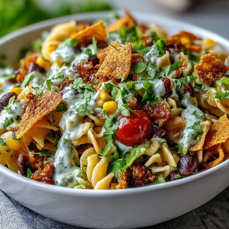 I made this at a beach day potluck where someone had brought a sad, mayo-heavy pasta salad that nobody touched, and I watched people go back for thirds of mine while it sat directly in the sun. There's something about the brightness of lime and cilantro mixed with the creaminess of that taco-seasoned dressing that just works, especially when you're eating outside and everything tastes a little sunburned and salty anyway.