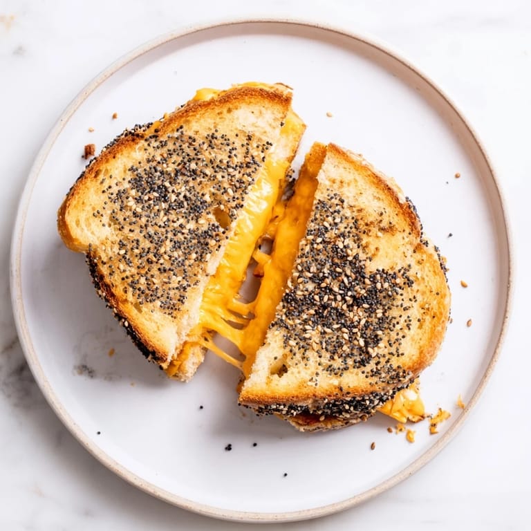 Save I stumbled onto this version of grilled cheese when I had a container of everything bagel seasoning sitting in my pantry and nothing else to do with it on a Tuesday afternoon. The moment I sprinkled it on buttered bread and watched it toast into this salty, garlicky, sesame-speckled crust, I realized I'd never go back to a plain grilled cheese again. There's something about that savory coating that transforms something so simple into something you actually crave.
