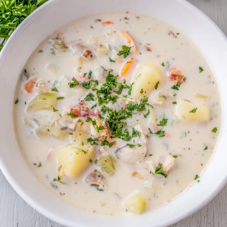 Save There's something about a bowl of New England clam chowder that stops time. I learned to make it years ago when a friend's grandmother showed me how to listen for the clams—that gentle click-click-click as they opened in the pot was the signal everything was working. She taught me that rushing ruins it, and that the best versions come from patience and respect for the ingredient. This creamy, briny soup became my answer to every gray afternoon and quiet dinner at home.