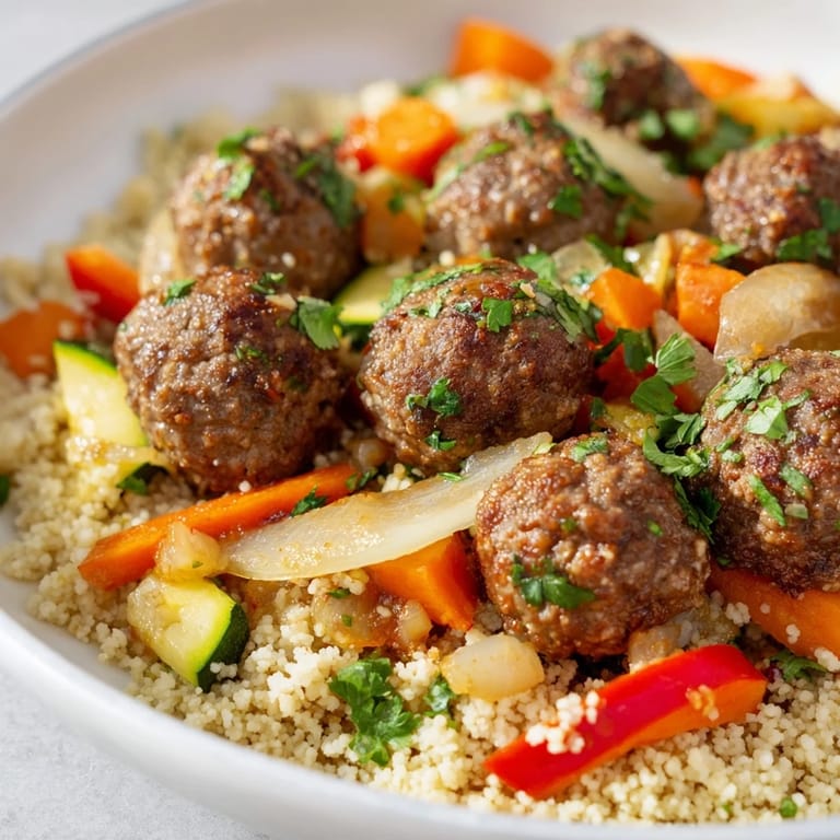 Save The first time I made kefta, I was standing in a cramped kitchen in Marrakech, watching my host's mother shape meat into perfect little balls with the ease of someone who'd done it a thousand times. She moved so fast, her hands barely pausing, while I fumbled alongside her, trying to match her rhythm. Years later, I still think of that afternoon when I make this dish—the way the spices filled the air, how the sauce simmered low and patient, and how a simple bowl of couscous became the most comforting thing I'd eaten in months.