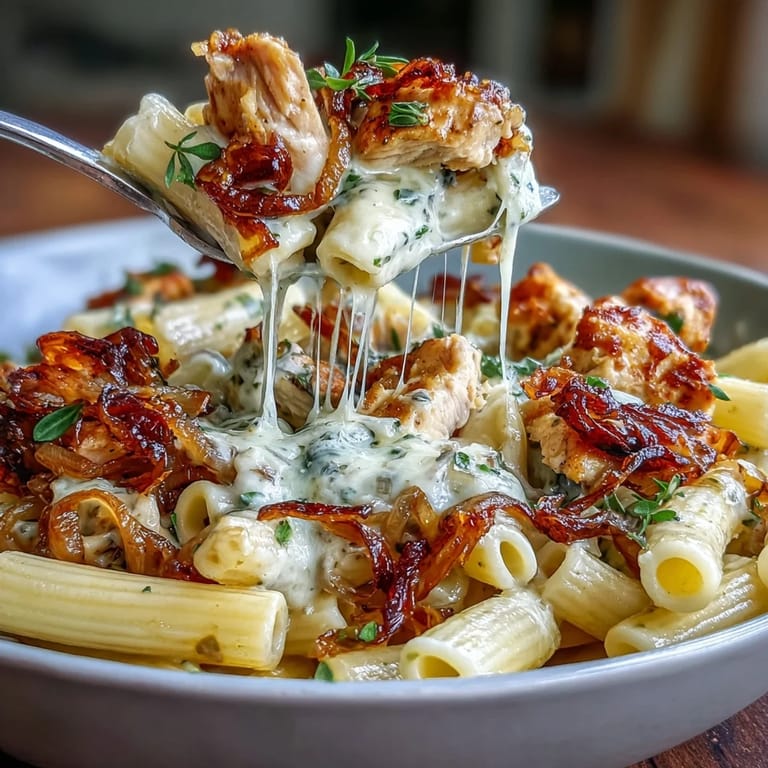 Take your time caramelizing the onions to develop the deep, sweet flavor that defines this dish. Use a heavy-bottomed Dutch oven or deep skillet to ensure even cooking and prevent burning. For best results, cut the chicken into uniform bite-sized pieces to cook evenly. Stir occasionally during simmering to avoid the pasta sticking to the pot.