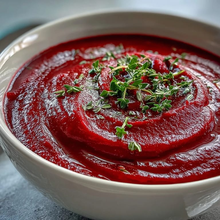 The brilliant magenta canvas of this soup practically begs for artistic flourishes. Ive discovered that a thin spiral of cream creates dramatic contrast against the vivid background, while tiny sprigs of fresh thyme add pops of green that enhance both flavor and presentation. For texture contrast, I sometimes add a sprinkle of toasted pumpkin seeds or a small crumble of tangy goat cheese that slowly melts into the hot soup, creating pockets of creamy richness throughout each spoonful.