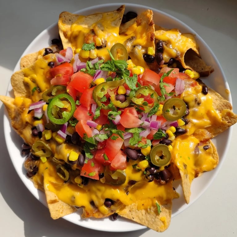 Save Crispy tortilla chips loaded with melted cheese, flavorful toppings, and served straight from the oven — perfect for a quick snack or casual dinner.