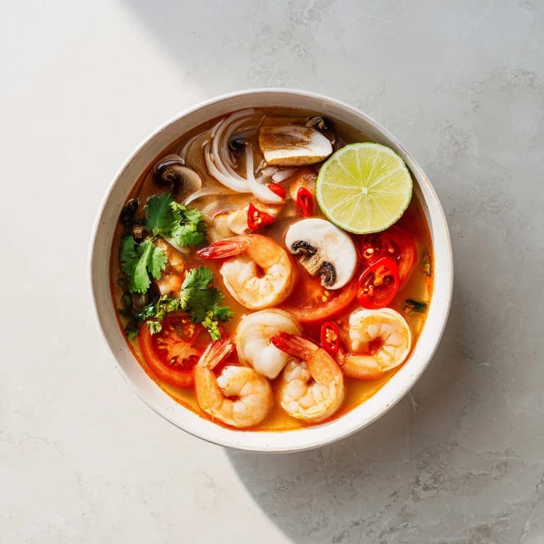 Save The first time I tasted tom yum was at a cramped Bangkok night market stall where the cook worked with one hand while gesturing wildly with the other, explaining that the trick was knowing when to stop and when to add more lime. I've made this soup countless times since, chasing that perfect balance of heat and brightness that makes you simultaneously sweat and smile. There's something about the combination of lemongrass and lime that feels like it's waking up your entire mouth, and somehow that clarity is exactly what you need on certain days.